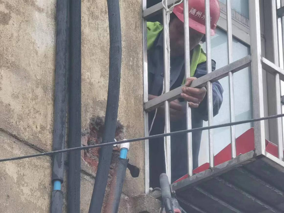 “這里水管漏了,外面的墻都打濕了,麻煩你們快來(lái)看看啊!”3月20日上午8點(diǎn)30分,建設(shè)工程公司接到市民的求助電話,稱他家墻外有根水管在向外冒水。運(yùn)維中心牽頭人張遠(yuǎn)燈立即安排維修人員第一時(shí)間趕往現(xiàn)場(chǎng)。經(jīng)過(guò)詢問和現(xiàn)場(chǎng)查看后,發(fā)現(xiàn)事故原因是2樓外墻進(jìn)屋處彎頭漏水,但該項(xiàng)維修內(nèi)容本不屬于公司的維修范疇。維修人員看到無(wú)助的老人,便毫不猶豫地爬上2樓陽(yáng)臺(tái),在狹窄的空間內(nèi)艱難地為老人更換破損管件。雖然是用戶房屋內(nèi)部管道漏水,水務(wù)人本著想用戶所想,急用戶所急的服務(wù)精神,不計(jì)較、不推諉的幫助用戶及時(shí)解決漏水難題。