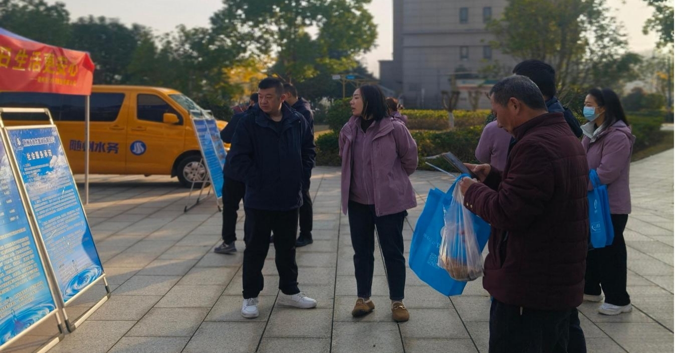 12月6日,隨州市水務(wù)集團(tuán)走進(jìn)碧桂園小區(qū),開展主題為“防凍、保水,讓冬日生活更安心”的供水服務(wù)入社區(qū)活動,為用戶講解供水知識、普及防凍常識,解答用戶的涉水問題咨詢。