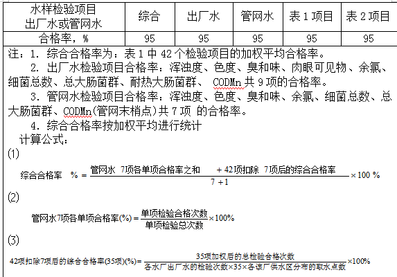 6.8??水質檢驗項目合格率要求見表4。